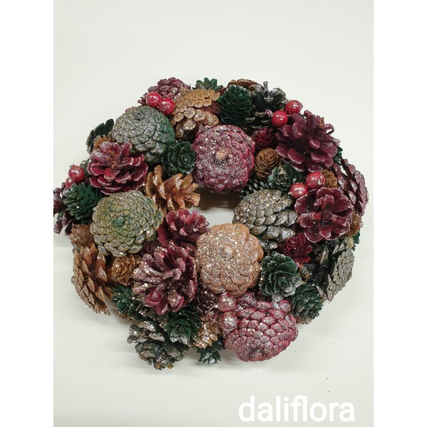 Dekoratyvinis vainikas, pilnai papuoštas. Vainiko skersmuo 28 cm.